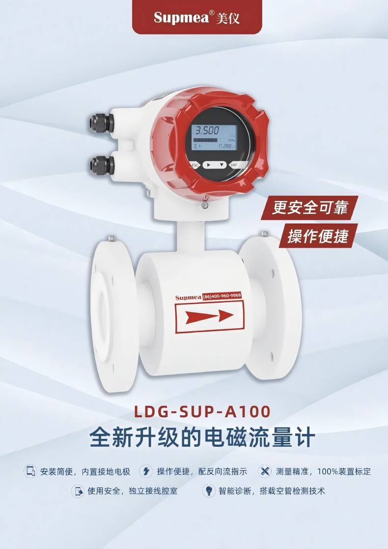 A100 电磁流量计不仅能够同时显示瞬时流量与累计流量,解决了客户对数据实时监控与统计的双重需求,而且其设计允许单独更换基板部件,大大降低了维护成本与停机时间,这一点对于追求连续生产的工业企业尤为重要。